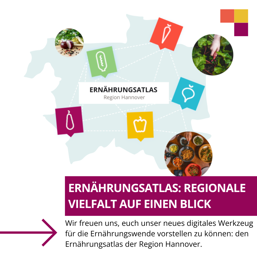 Wir freuen uns, euch unser neues digitales Werkzeug für die Ernährungswende vorstellen zu können: den Ernährungsatlas der Region Hannover. Diese interaktive Karte macht die beeindruckende Vielfalt unserer regionalen Lebensmittellandschaft sichtbar und hilft dabei, Erzeugerinnen, Verarbeiterinnen und Verbraucher*innen miteinander zu vernetzen.